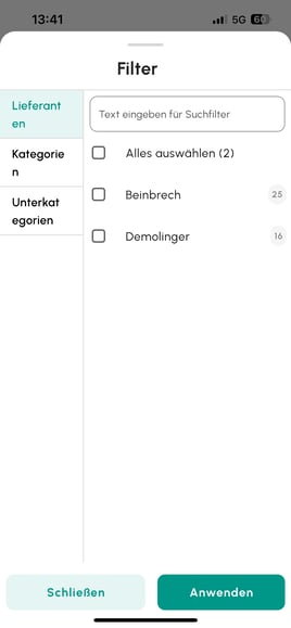 Sie können im Katalog über die Suche Ihre Produkte finden und/oder nach Lieferanten im Katalog filtern.