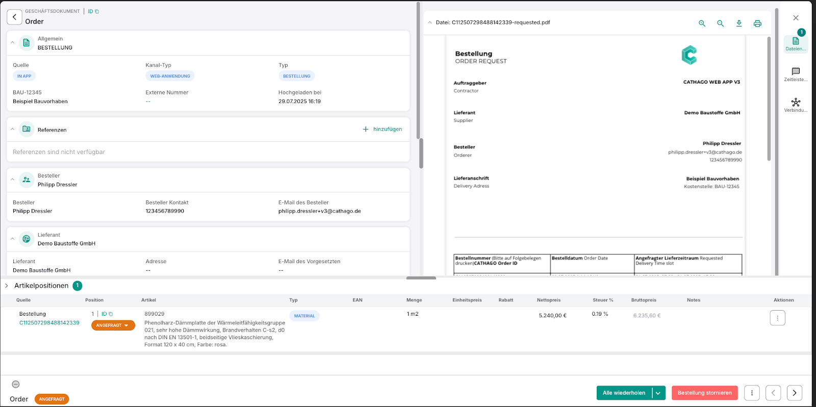 Klicken Sie auf eine Bestellung, um in die Detailansicht zu gelangen.