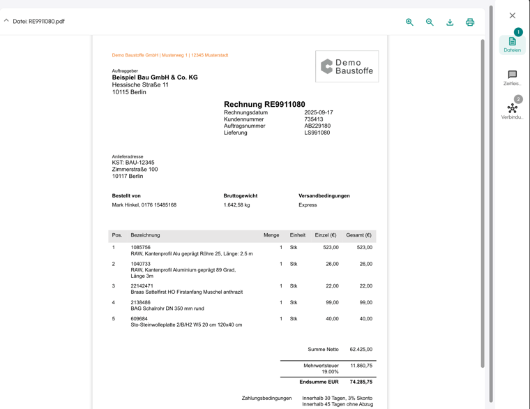 - Dokumenten-Typ (AB, Lieferschein, Rechnung etc.)