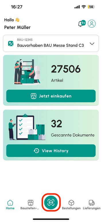 Wählen Sie im Hauptmenü das Bauvorhaben aus, für das Sie ein Dokument erfassen möchten.