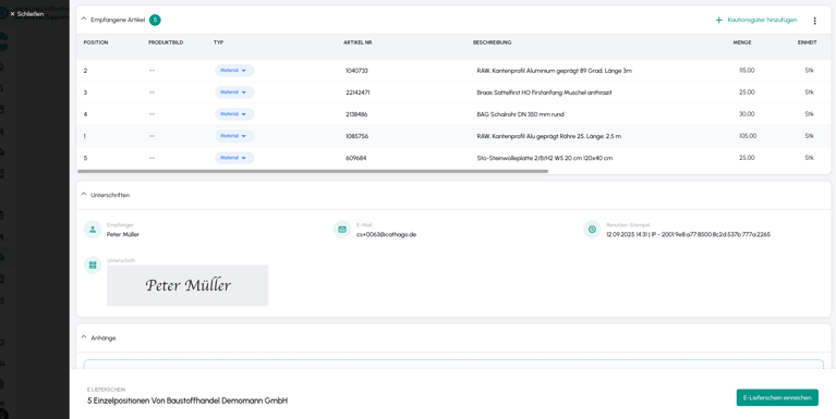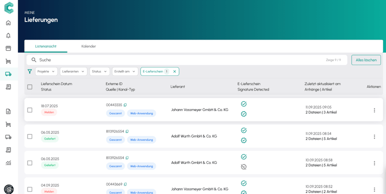 Klicken Sie auf "E-Lieferschein einreichen", um Ihren Wareneingang zu speichern.