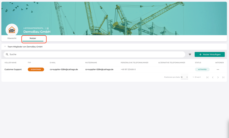 Gehen Sie in den Account-Einstellungen in den Bereich "Nutzer"
