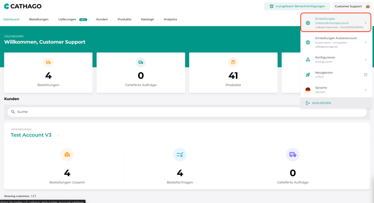 Öffnen Sie die Nutzereinstellungen, indem Sie oben rechts auf Ihr Profilbild oder Ihren Namen klicken und anschließend die „Einstellungen Nutzeraccount“ auswählen. Es öffnet sich eine Karte.